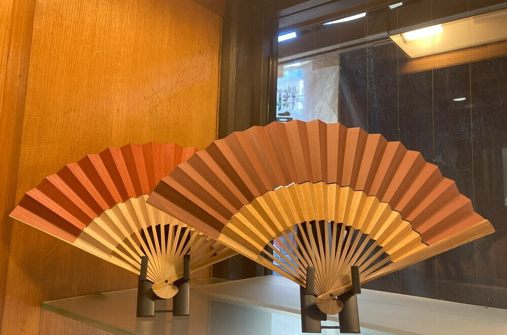 店内には扇子のほかに渋団扇や和の小物も置かれ、外国人観光客も多く訪れる。