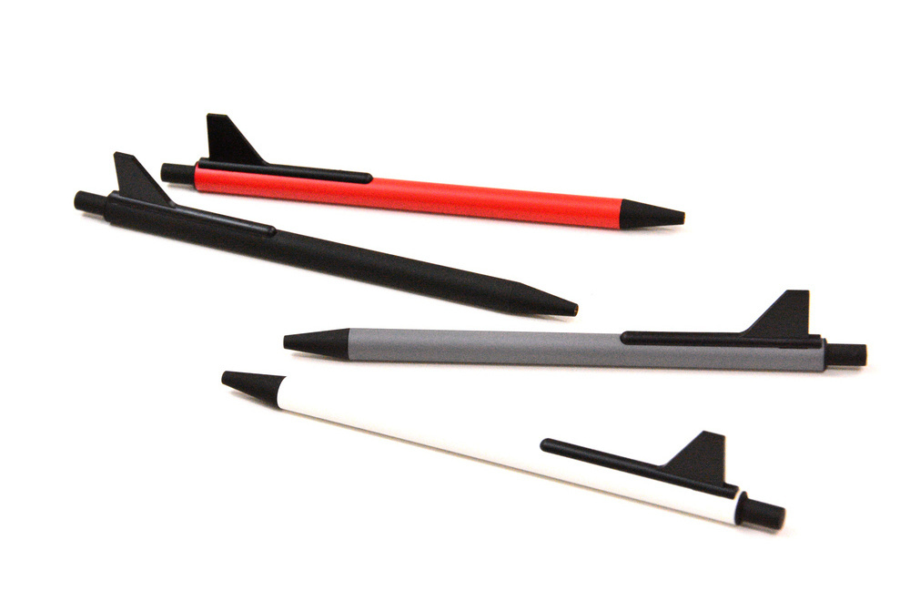 羽ペンといえば鳥の羽根がついた優雅なペンを想像するが、こちらはシンプルで美しいボディに飛行機の羽がついた遊び心のある油性ボールペン。伊東屋オリジナル。各1540円(全4カラー)。