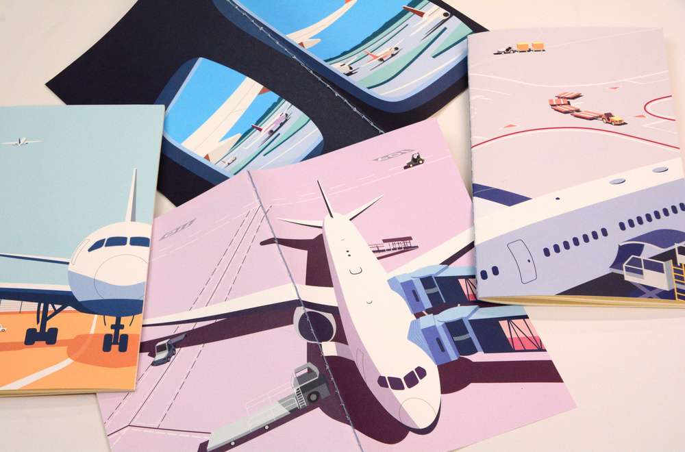 伊東屋オリジナルの新商品「AIRPORT NOTEBOOK」。飛行場での体験や心の高揚が描かれたデザインノート。