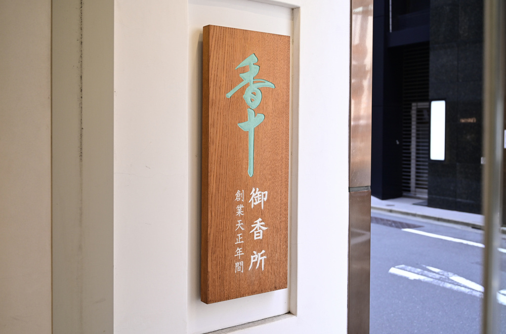「香十(KOJU)」の始まりは16世紀後半、天正年間の京都。初代はお香の原料を選択し調合する「香司」として御所御用(ごしょごよう)を務め、二代は太閤豊臣秀吉(たいこうとよとみひでよし)、四代は徳川家康(とくがわいえやす)に召された由緒ある名跡です。江戸時代には第八代十右衛門(じゅえもん)が多くの銘香をつくり、茶道界を中心に香十の名声が高まりました。以後代々の主人がその名前を継承しています。銀座本店には香道家など顧客の応接や「聞香(もんこう)」などのワークショップを行うサロンが設けられ、御簾(みす)越しに眺める棚には貴重な香木(こうぼく)を収めた容器が並びます。伝統と風格を感じるのもこちらを訪れる楽しみです。