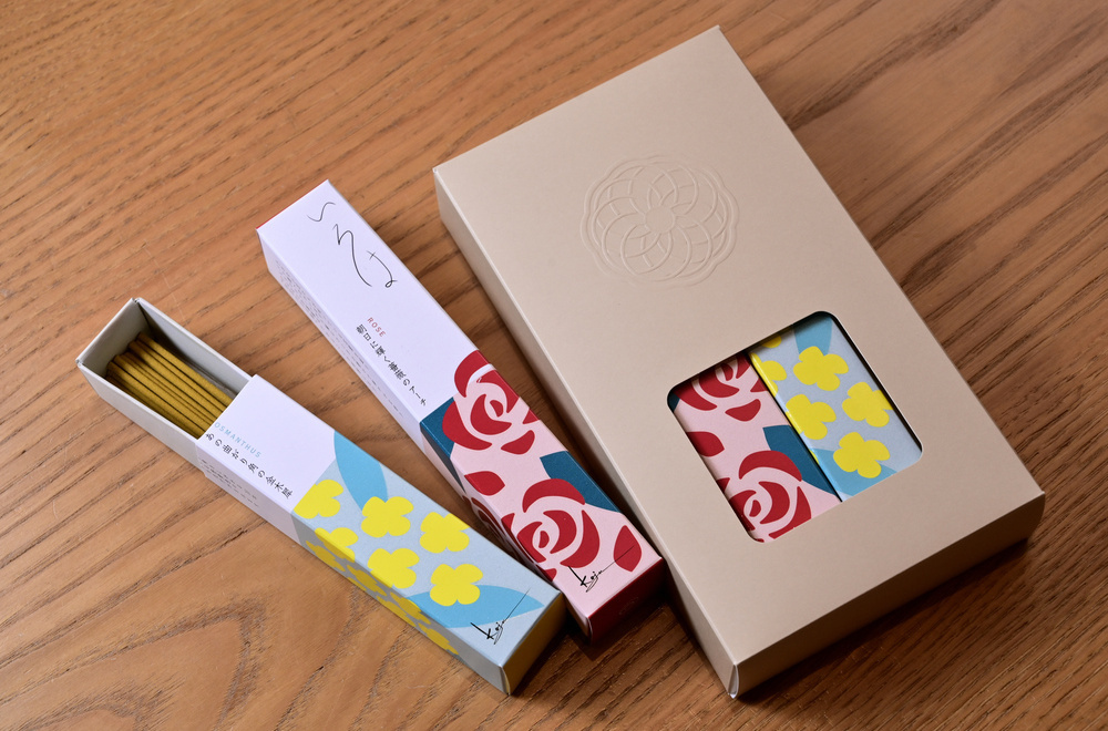その中で、『香十いろは(KOJU IROHA)』は、「香りの情景をイメージできるので、はじめてお香を使う方におすすめのシリーズです」と店長の馬越正子(うまこし せいこ)さんから。白檀や沈香のほか、金木犀や水仙、藤といった和花の香りを揃え、「あの曲がり角の金木犀」などのネーミングが記憶の中の香りと響き合います。