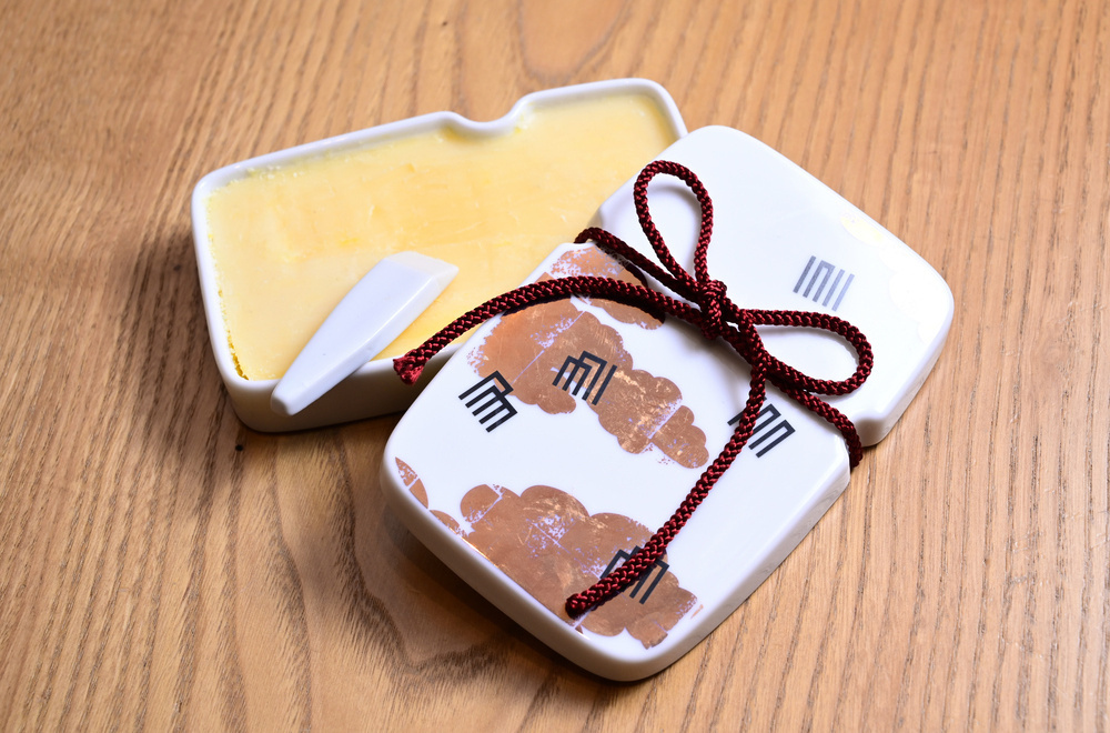 削ると香りが漂う室礼香(しつらいこう)は、玄関に置いて来客時のおもてなしなどに。ふたつきの美しい陶器は置物としても楽しめる。白檀など全4種各5500円。