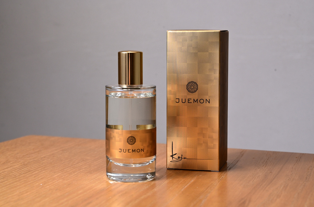また、名刺入れの中で香りを移す「名私香(めいしこう)」は、渡した名刺がほのかに香り、さりげなく美意識を伝えたり、印象を深めたり。コミュニケーションに役立てることができます。求めやすい価格でサシェの感覚で使える「珠衣(TAMAI)」とともに外国人観光客に特に人気が高いそう。高級感あるたたずまいがひときわ目をひくのがオリジナルのオードトワレ「JUEMONジュエモン」。上質の香原料を使い、「和装の衣擦れ」や、「威厳と落ち着き」など、和装や着物をテーマにした香りがラインナップされています。