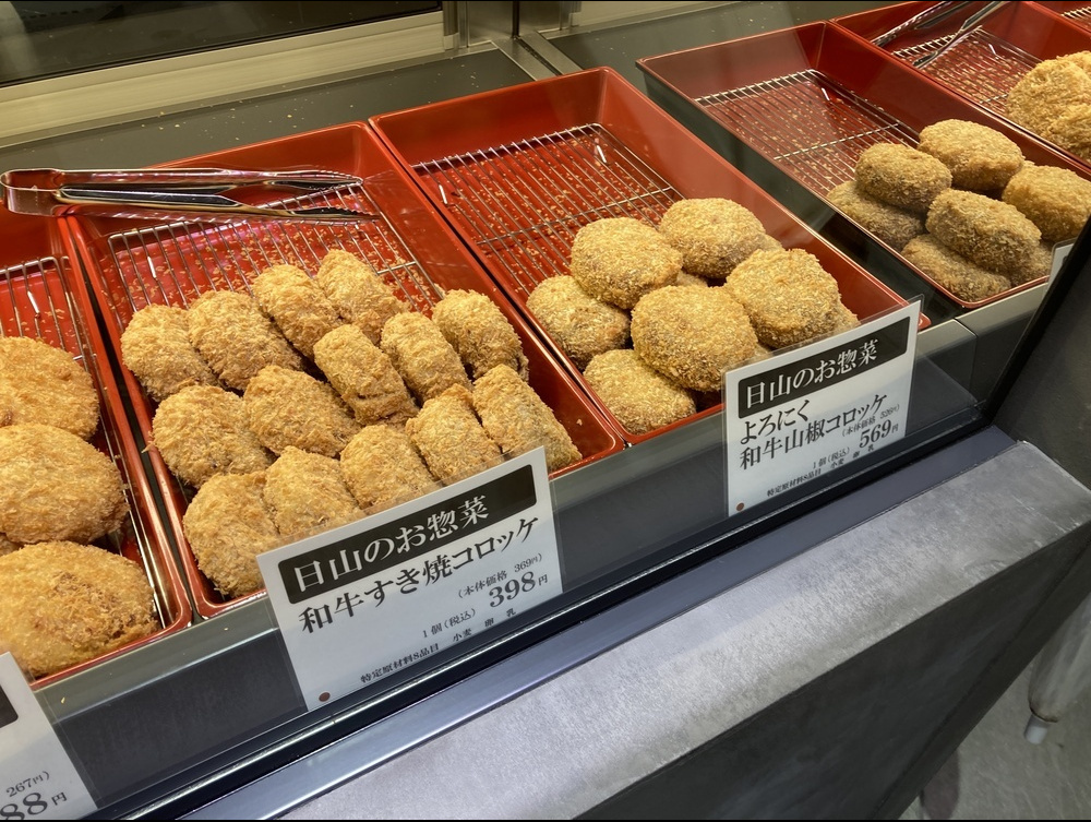 1912年創業、⽇本橋⼈形町に本店を構える精肉店。熟練の⽬利きが芝浦市場で買い付ける牛・豚がショーウィンドウに並びます。一角では揚げたてのコロッケ・メンチカツなどを販売し、焼き肉の名店「YORONIKU」監修の「よろにく和牛山椒コロッケ」は、山椒の風味が大人の味わい。お弁当のスタイルでも注文できます。