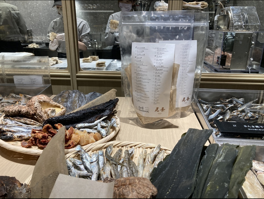 明治4年創業の乾物問屋が手がけるセレクトショップ。国産素材で化学調味料・塩無添加の36種類のだし原料が用意され、自分の好みに合わせてだしパックをブレンドできます。厳選した醤油・味噌など調味料やごはんのおともなど日本各地のおいしいものもセレクト、シンプルで本当においしい和食に導いてくれます。