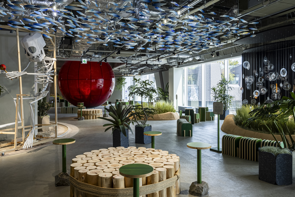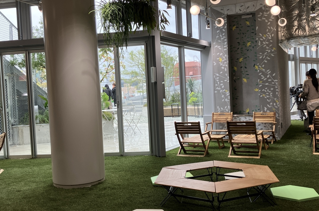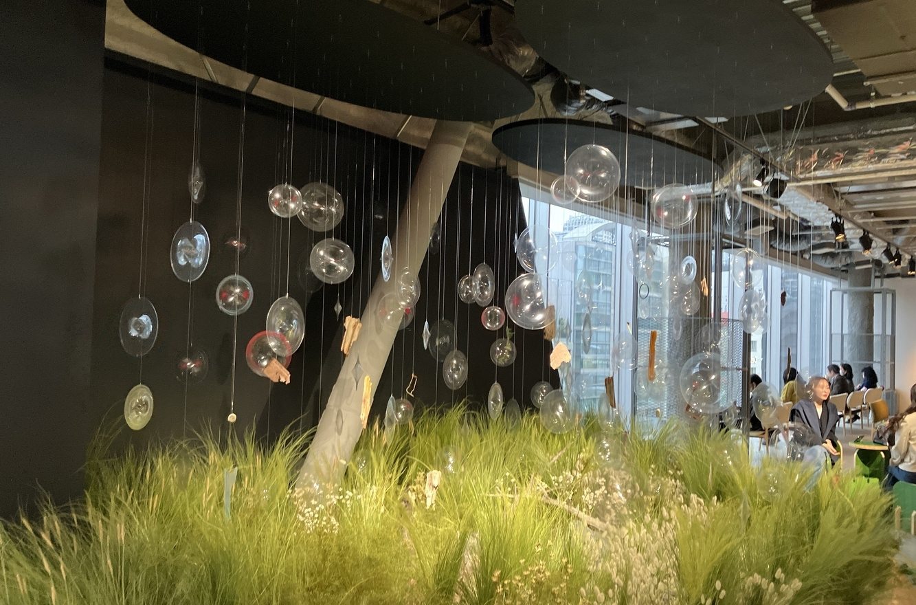 3階まで散策したら、4階「ハラッパ」でしばしブレイクを。ここでは、自然やサステナブルを感じるコンテンツが展開され、風、光、雨などをテーマにしたアート作品を楽しむことができます。フロアには、本来なら廃棄されるような素材を利用したプランターなどを使用して育んだ緑に溢れています。自由に座れるベンチも設置されているので、都会の喧騒を忘れてぼーっとしてみるのもいいかもしれません。
