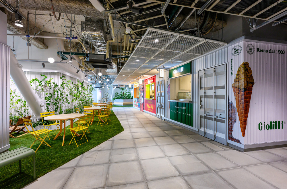 椅子やテーブルも設置され、ゆっくり飲食できる。