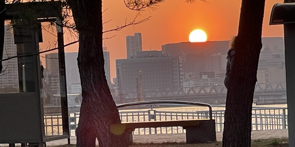 近くには潮風公園など散策スポットも。夕景の美しさもぜひ体験したい。