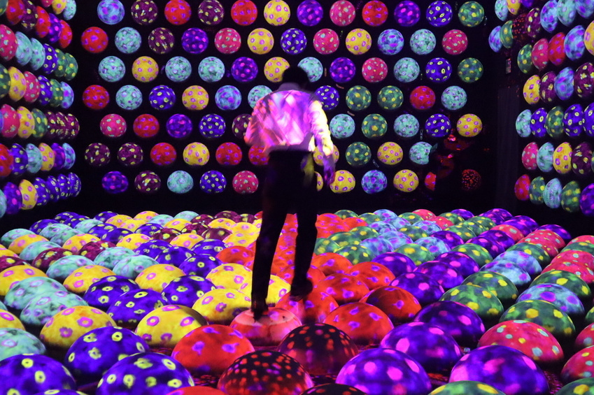 チームラボ《あおむしハウスの高速回転跳ね球》
