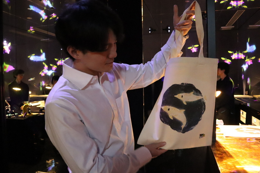 缶バッジ、ハンドタオル、Tシャツ、トートバックなどのプロダクトが作れます。僕はトートバックを選びました。絵入りのプロダクツは、「スケッチファクトリー」に寄って受け取ります。