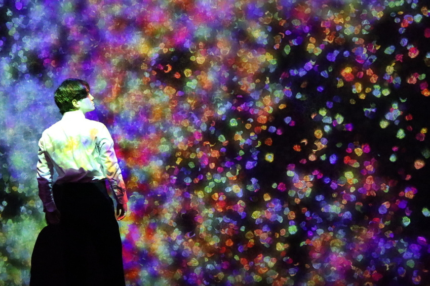 3つの新エリアに加えて、新作アートも幾つか公開されました。その一つが「Autonomous Abstraction」。壁に触れ、動くと点は吹き飛んでいきますが、近い点同士が近づきあっていくアートです。これは、引き込み現象と呼ばれる動きで人間が生まれながらに持っている特性の一つだそうです。