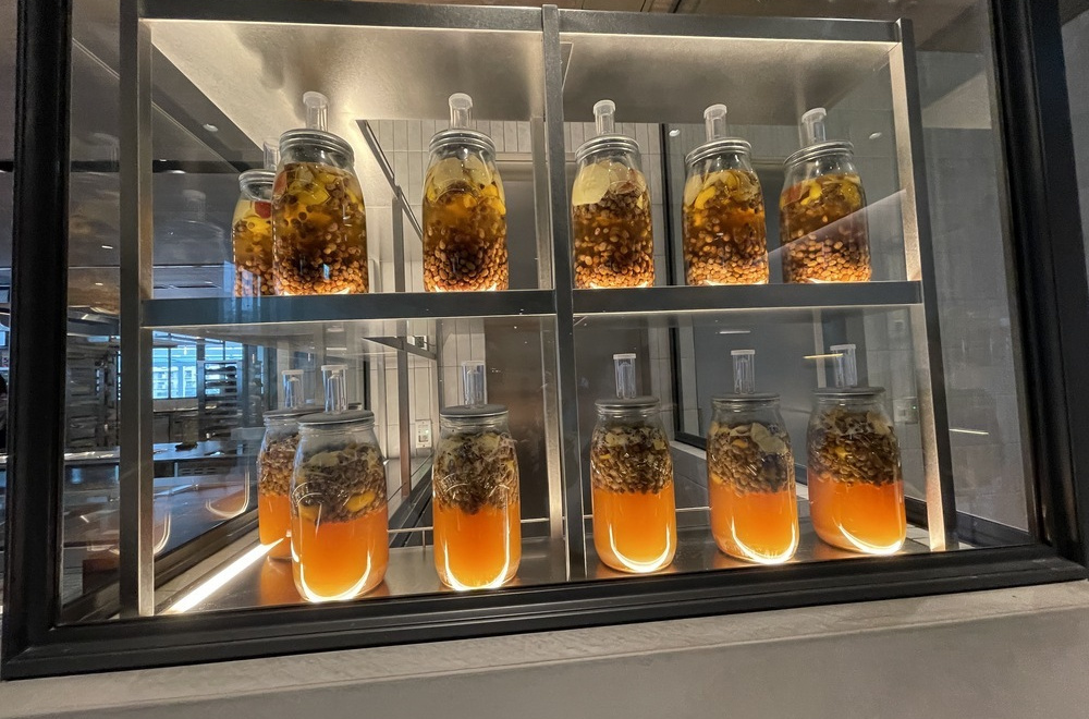 「OGAWA COFFEE LABORATORY 高輪 PAN:013」に陳列された、レーズンを使用した自家製酵母。