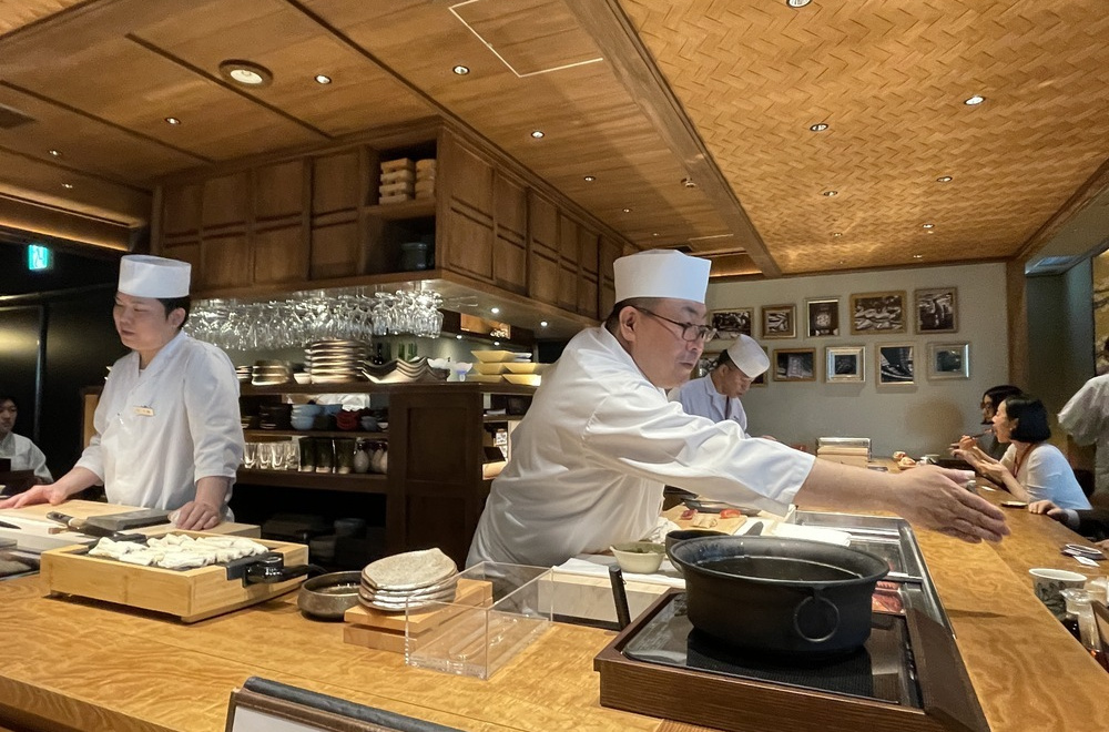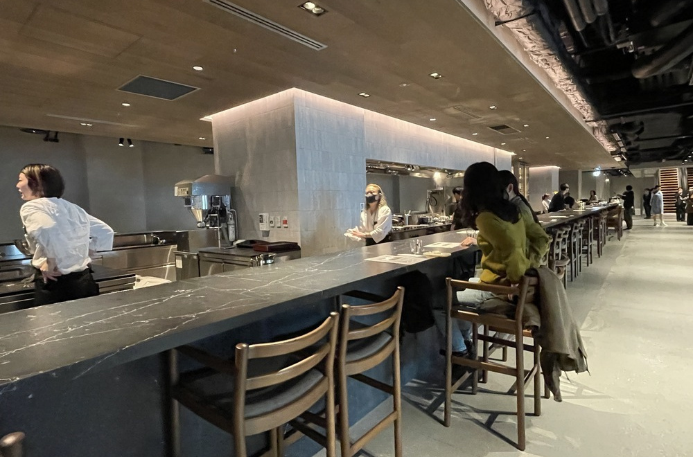 炭火焼き料理などが味わえるオープンキッチン「OGAWA COFFEE LABORATORY 高輪 KIT:360 」。