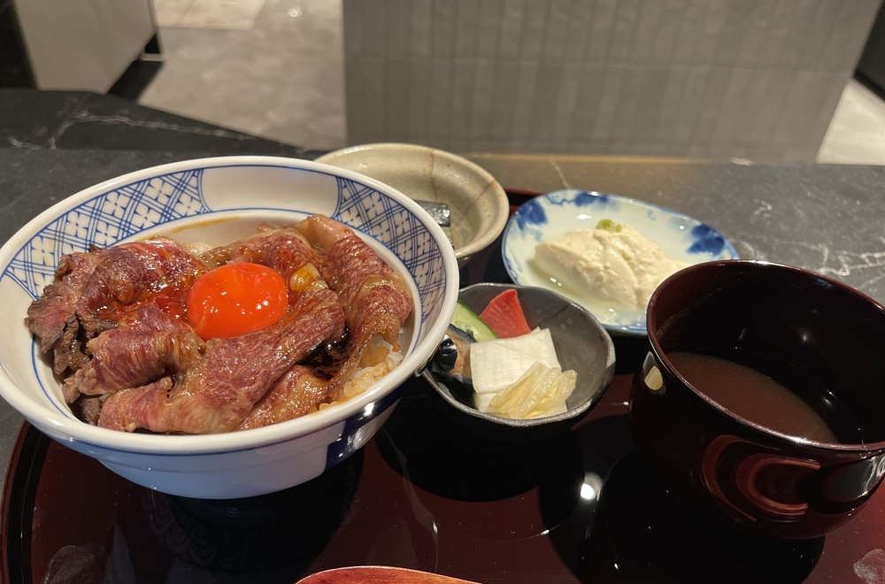 A5ランクの和牛を使った、贅沢な牛丼を堪能できるお店。全周50mの開放感あふれる大理石のバーカウンターの内側は360°のオープンキッチンになっており、職人が丁寧に牛丼を仕上げていく様子を見ることができます。牛丼のほかにも、旬の食材などを使ったこだわりの一品料理が揃い、日本酒やワインも楽しめます。