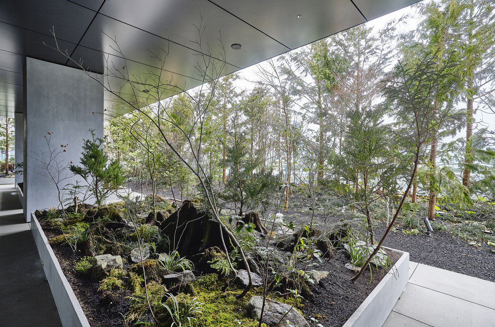 MIMUREでは「100年先の未来へと続く空間を。」をテーマに、石や金属、タイル、ガラスなど素材が持つ美しさと、草木や岩による自然の循環をあわせた空間を創り出しています。シンプルながらも存在感があるオブジェや草木は必見。見ているだけで都会の喧騒を忘れ、ホッとできる時間を過ごせそうです。
