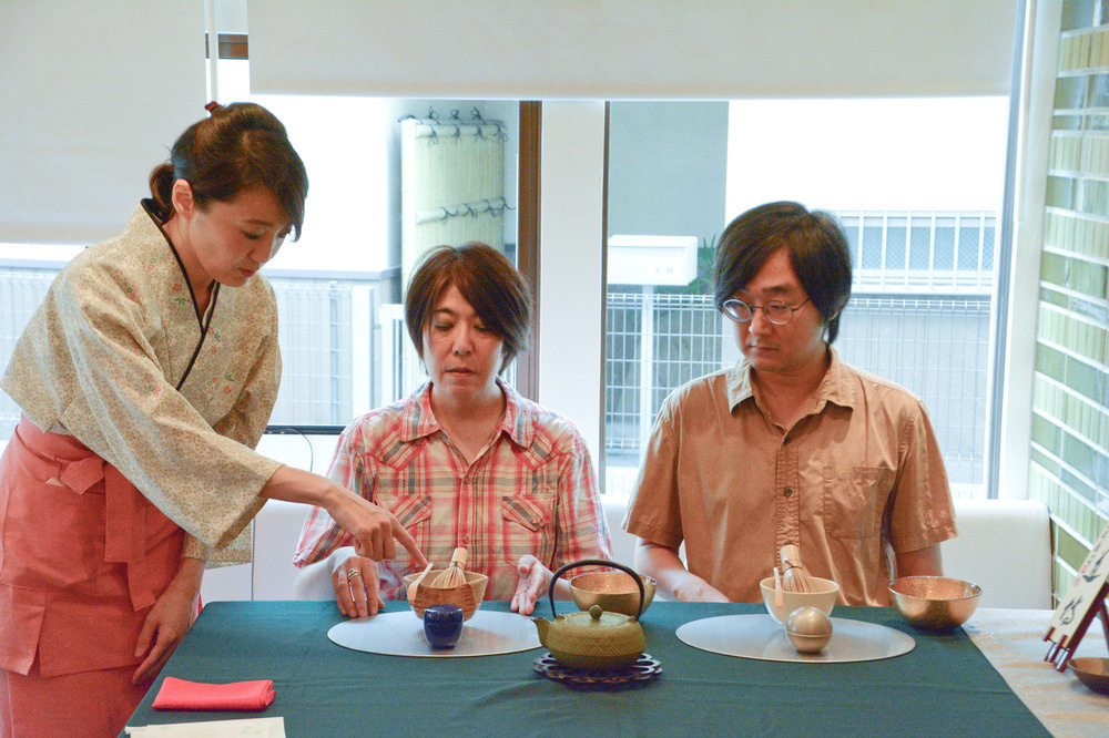 お菓子とお茶を楽しんだ後は、いよいよお茶をたてて「おもてなし」をする時です。お道具にはそれぞれ決まった位置があって、決まった順番で準備をしていく必要があります。最初は、作法が複雑に思え、緊張してしまいますが、リラックスしましょう。やさしく丁寧に教えてくれます。