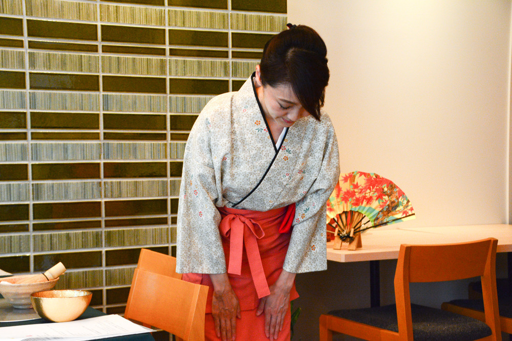 インストラクターがお辞儀のお手本を見せてくれるので、真似をしてみましょう。